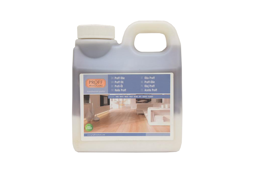 Proff Masterolie Wit voor het wit olieën van een onbehandelde, geschuurde houten vloer.